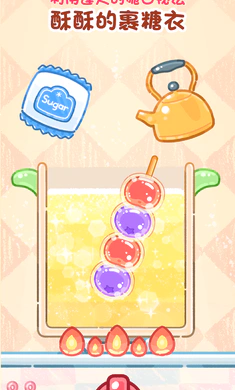 2、丰富食材自由搭配:游戏内提供超30种可解锁食材与10特色糖衣配方,支持甜咸酸辣自由混搭。从经典山楂串到创新辣味牛肉葫芦,打破传统边界,满足你的多样创意。