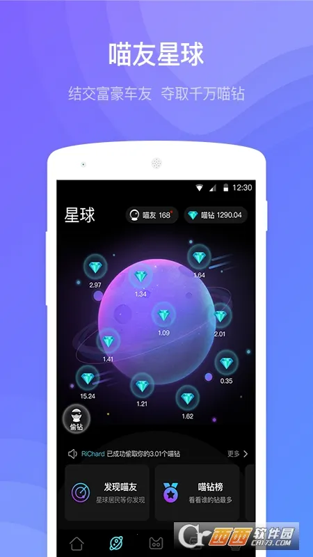 3、设有喵友社交社区,能与全国车友聊天,分享景点美食,完成任务积攒喵钻可免费兑换时尚车品。