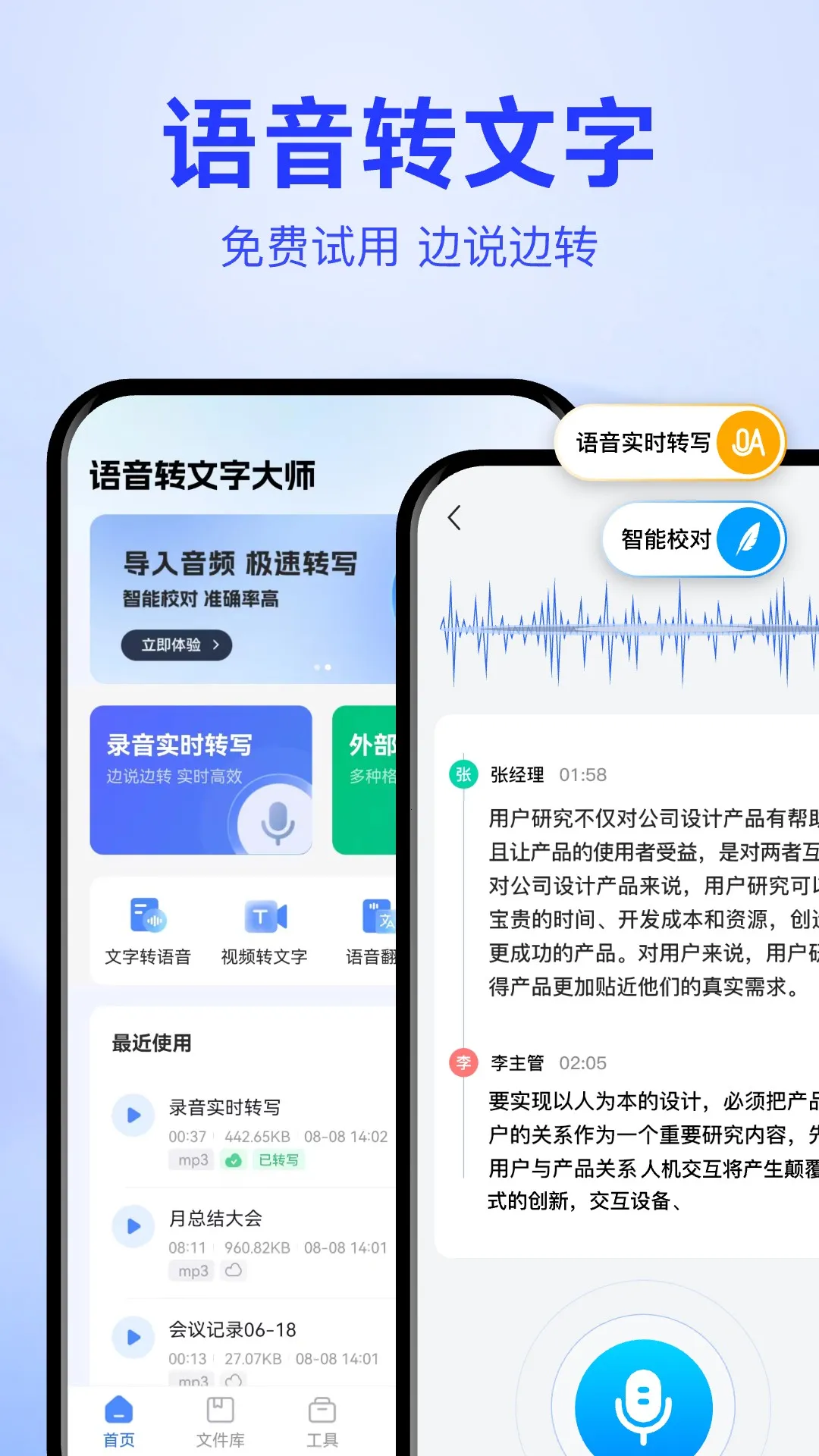 语音转文字大师2026官方最新版本是一款处理音频文字互转的手机工具,支持多种影音视频转文字方式。拥有语音速记、音频转文字等多项功能,采用AI录音识别转录技术,操作简单,适用于多场景,工作效率高。