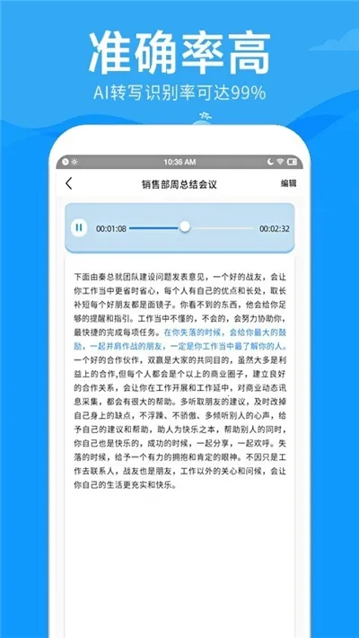 工作效率超高,一小时音频五分钟内就能转换成文字出稿,快速又准确。