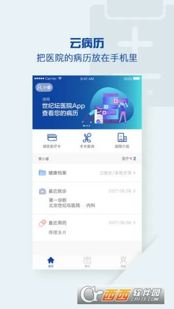 世纪云服务是北京嘉美在线科技有限公司研发的健康管理软件,与北京世纪坛医院联合服务。就诊后自动获取病历处方等,支持云端查询、同步记录,还有预约挂号等功能,方便就医与管理病历。
