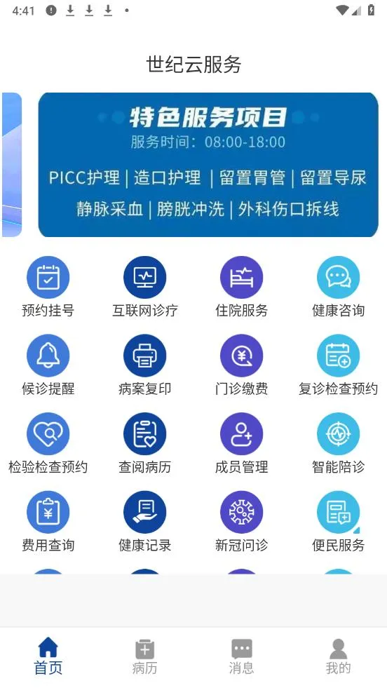 世纪云服务曾是一款超实用的多功能云端平台。它能提供便捷的云存储,让你随时随地上传、下载和共享文件,多设备无缝同步。在线办公套件更是强大,文档编辑、表格制作、幻灯片演示等功能一应俱全,方便团队协作和远程办公。对于就医患者来说,它能自动同步病历报告并归类,支持便捷管理家庭成员病历。绑定医保卡后,能随时随地查看在世纪坛医院的病历处方、检验检查报告等。就诊后自动获取相关信息并同步到手机,智能化归档方便回顾查阅。还集成了预约挂号、缴费、院内导航、医院介绍、专家团队介绍和就医指南等功能,极大地方便了患者就医,提升了医疗效率和服务水平,为大家带来了高效便捷的云服务体验。