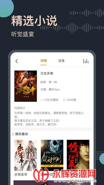 1. 海量资源:拥有文学名著、玄幻修仙、都市言情等海量有声小说资源,涵盖各种类型,满足不同用户的听书喜好。
