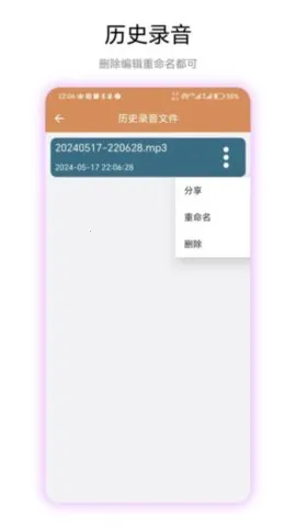 悬浮录音机是一款超棒的音频管理工具。它功能强大,能满足各种录音需求。高清录音功能确保录音清晰无杂音,不管是在嘈杂的环境还是安静的地方,都能录到满意的声音。智能录音转文字更是一绝,一键就能把录音内容转化为文字,方便整理记录,大大提高了工作学习效率。全能音频剪辑让你可以轻松编辑录音,裁剪、合并、调整音效等操作都不在话下。还有悬浮录音按钮设计,随时随地都能快捷开启录音,不影响其他操作。无论是学习、工作还是日常娱乐,它都能提供专业的录音服务。比如在会议中能准确记录内容,学习时快速整理笔记,娱乐创作时留下精彩音频。总之,悬浮录音机是你音频管理的得力助手,有了它,录音、整理都变得轻松又便捷。