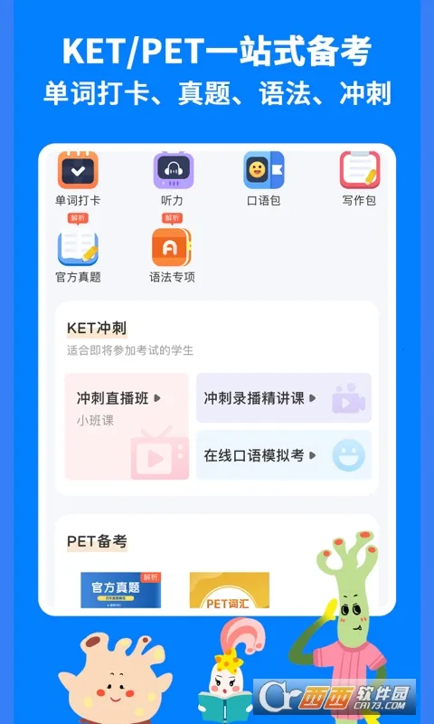 剑桥KETPET珊瑚赢英语最新手机版是全面的剑桥英语考试学习备考平台。有多种实用功能,如定制备考计划、专业教师授课、单词打卡等。内容丰富有趣,分级教学,能助力孩子高效备考,提升英语水平。