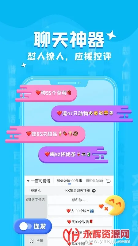 嘿,你要是想让聊天变得超有趣,那可一定得试试 KK 键盘!它功能超强大,能解决不少问题呢。有各种好玩的语弹,独特网名、刷屏连发、特殊字符啥都有,聊天能一键发到爽。还有海量热门 emoji,输入文字自动出图,斗图超厉害。超级剪贴板容量超大,单条支持 1 万字,内容安全还能分类管理。多款游戏定制键盘,打字语音全优化,专属语弹和快捷短语超方便。KK 趣聊能在 QQ 发对方看不到的消息,还有好多玩法。语音包各种恶搞到账语音,变音超好玩。花样字能打出各式花样字体和特殊符号,内置爆火文案。聊天气泡样式独特,微信 QQ 都能用。总之,用了 KK 键盘,聊天、玩游戏都更有意思啦,能让你轻松成为聊天达人!