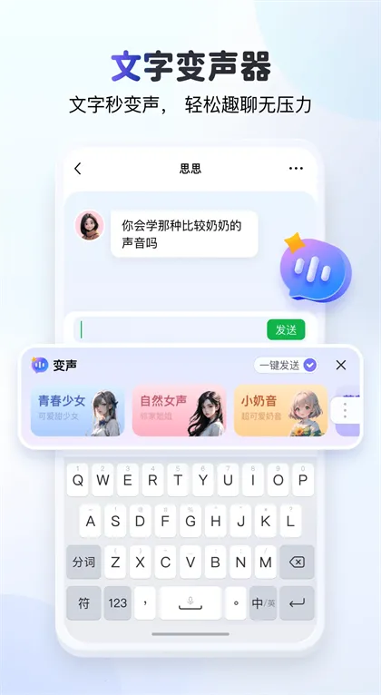 3. 丰富语音包超好玩:拥有某宝恶搞到账语音、意大利炮男声女声伪音变音等各种语音包,微信QQ游戏都能用,聊天场景全覆盖,变声恶搞趣味横生。