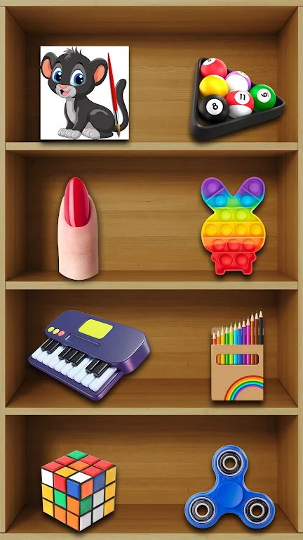 这款游戏拥有丰富多样的烦躁玩具玩法,包含市面上流行的各种坐立不安玩具,如弹出泡泡、指尖陀螺等,每一种都精心设计,配合真实触感反馈与音效,带来沉浸式放松体验。