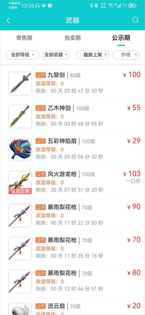 2、以武器为例,进入对应页面后可在公示期内查看商品及抢购倒计时