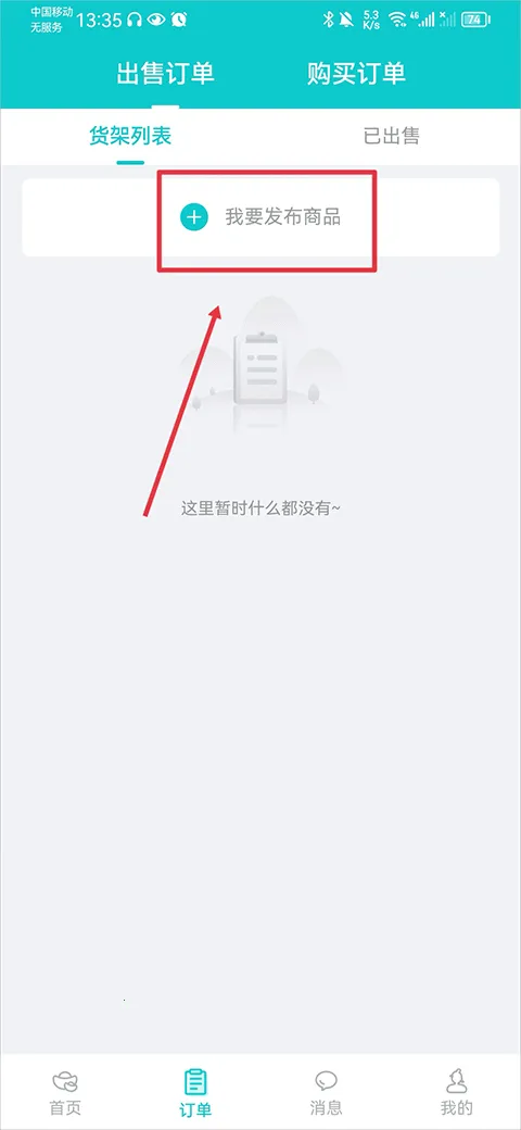 1、打开app,在订单界面的货架列表中点击“我要发布商品”