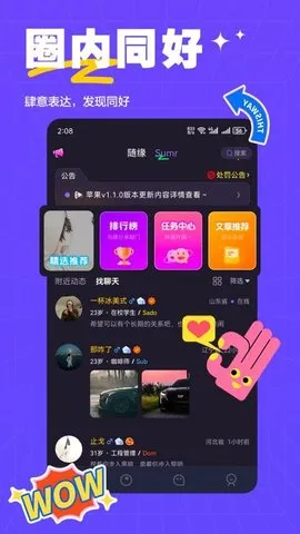 4. 拓展圈子:支持按兴趣爱好找社交圈子,加入喜欢的圈子与他人聊天互动,不断扩展朋友圈,结识更多新朋友。