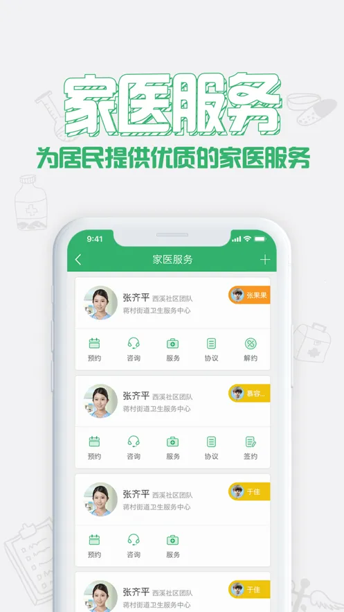 家医服务:可进行家医签约,家庭医生成为健康守门人,帮助养成良好生活习惯,预防疾病发生。