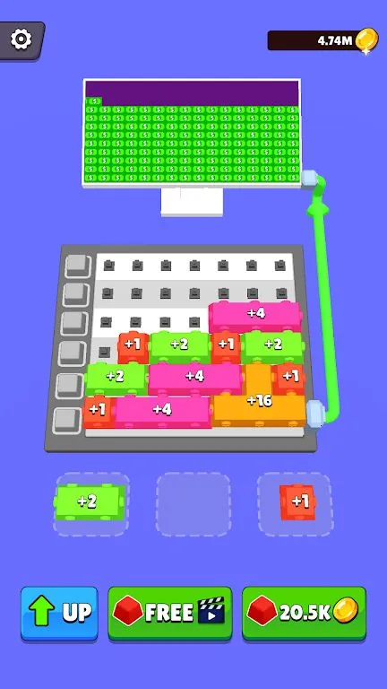 金钱键盘游戏,放置按钮开始赚钱,合并按钮可升级以获更多收益,无按钮则无收益。能创建专属键盘,点击越多收益越多,通过不断点击、合并按钮,朝着亿万富翁目标进发,点击即可畅玩。