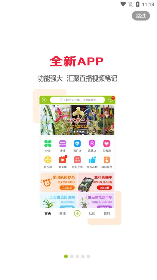 3、信息展示全面:首页展示兰花各种交易信息和售卖情况,关注栏可查看关注的商家与个人,社区能查看兰友分享笔记和平台公告,“我的”可查看订单、竞拍情况、浏览足迹等。