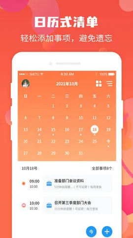 3. 日历视图超清晰:在日历中可方便地查看每一天的日程计划安排,对整体日程一目了然。