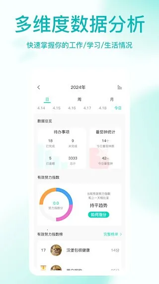 4. 具有充实率提示的日视图、周视图和月视图,方便用户了解时间安排。