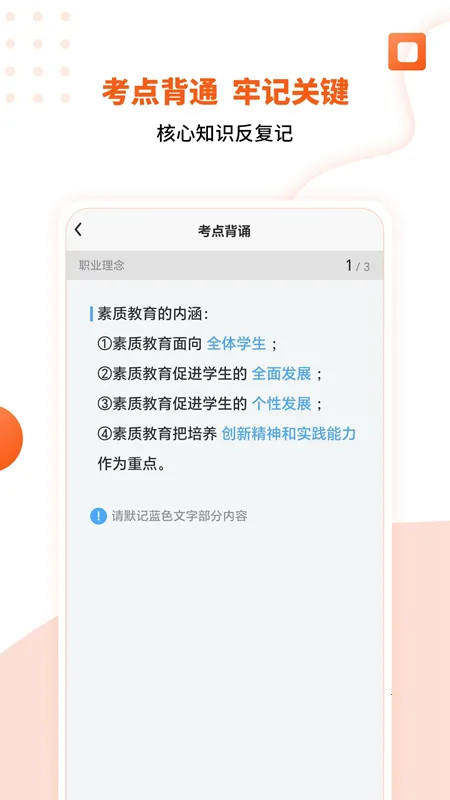 亿学云是个不错的教资备考平台。它由四川优师道教育科技有限公司全新打造,课程涵盖教师资格证考试、教师招聘考试以及普通话考试等。这里有很多名师在线课程,能帮考生牢记考点知识。其具备在线学习、刷题、背诵、作业模拟练习等功能。有自主练习的自适应学习引擎,会依学生知识点掌握程度推送习题。还有错题记录,可查看历史错题。精选数百万道练习题,覆盖各科目重要知识点,利用碎片时间练习有助于提分。详细解析能开阔做题思路,还有数据督学,能呈现刷题及听课全站排名,助力考生备考。