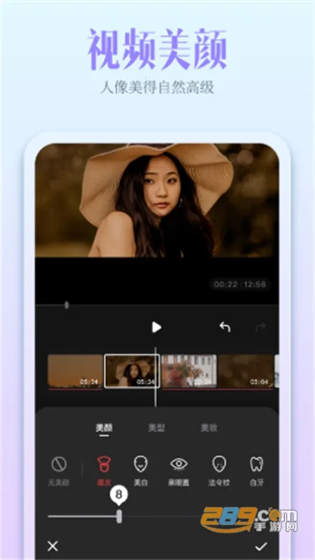 3. 操作界面简单易用,创作轻松上手。通过简单剪辑操作,可对画面调色、美颜,添加文字和音乐,自定义视频审美。
