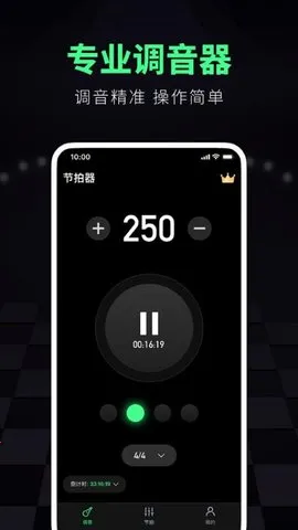 调音大师安卓版是简单易用的调音器和节拍器软件,能模拟真实吉他调音,提供多种调音器满足不同乐器需求,有多种模式选择,智能精准、设计简单,助乐器爱好者轻松校准音准、把握节奏。