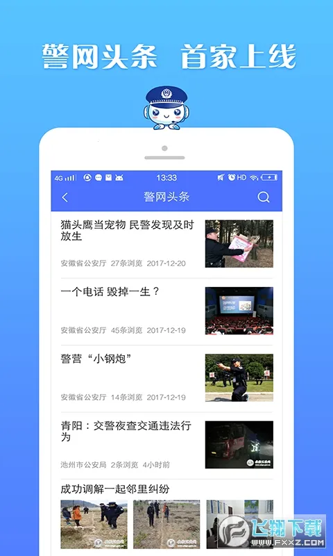 皖警便民服务e网通是安徽省公安厅官方发布的公安服务软件,由讯飞智元研发。提供交管、户政、出入境等166项服务,有一键挪车、驾照查分等功能,还有警网头条,能让群众少跑腿办好事。