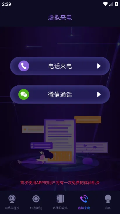 摄像头探测器是一款隐私保护工具,可检测周围隐蔽摄像头,防止偷拍与隐私泄露。能一键扫描,利用数据挖掘技术深度探测,有智能匹配等功能,操作简单高效,还可模拟来电,助您规避风险,放心出行投宿。