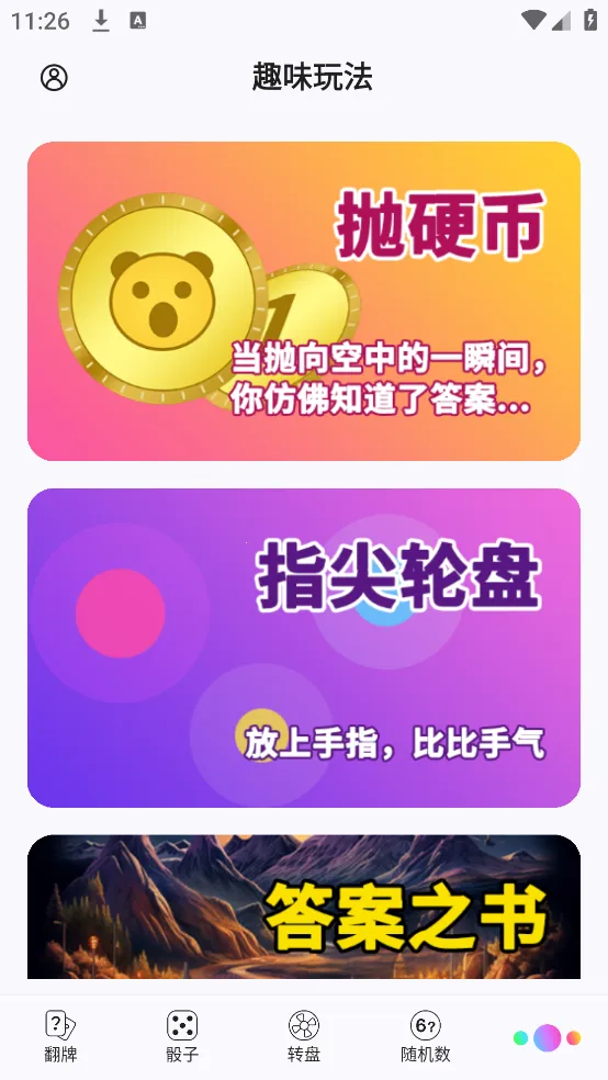 2. 玩法丰富多样:不仅有常规转盘,还有 3D 骰子摇骰子对决,最多可同时摇 100 颗。趣味随机数范围极大,能设幸运数字,也可屏蔽特定数字,还能随机生成字母数字组合。翻牌设置隐藏炸弹牌,增加刺激感,是团建必备。此外,抛硬币、指尖转盘等玩法持续更新。