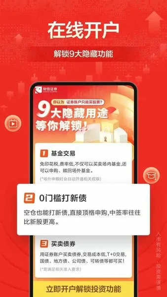 财信证券是湖南财信金融控股集团旗下核心企业,其证券理财软件支持在线开户、选股。有十档行情等特色功能,涵盖多种业务,提供权威资讯、贴心客服,还有多种优惠与智能工具,助您全方位理财。