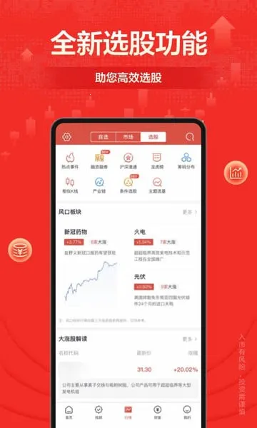 2. 智能工具丰富:有筹码分布、相似K线、条件选股等智能工具,助您跟踪机构动向,洞察主力成本。