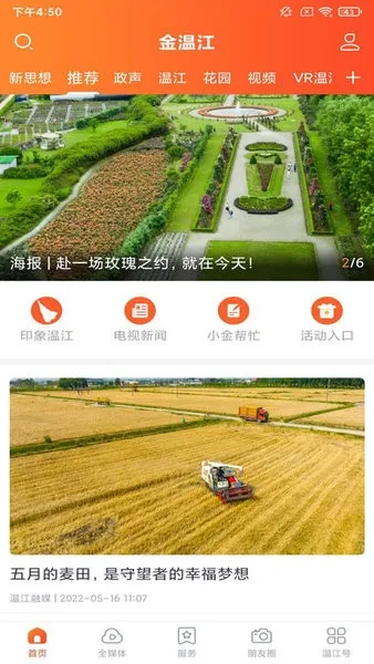 金温江安卓版是成都市温江区融媒体中心打造的新闻综合类客户端。有首页、全媒体等一级栏目,聚合本地资讯与政务服务。具备多元展现形式,提供广播节目,能查社保等,还可参与活动,轻松了解温江动态。
