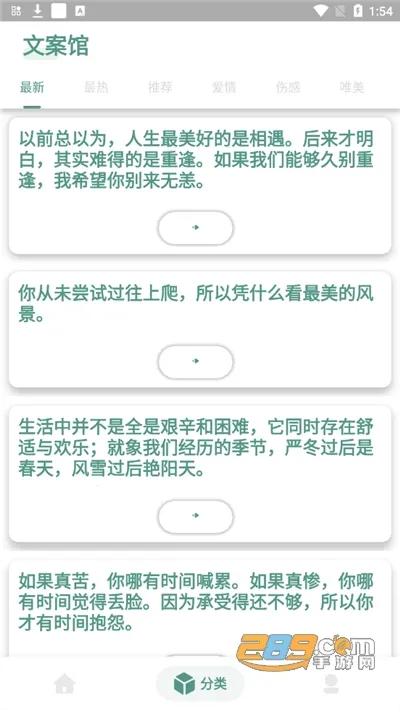 1. 文案分类清晰,查找方便。千万条文案被整齐分类,如恋爱、伤感、青春等,让您能快速定位所需,节省时间。