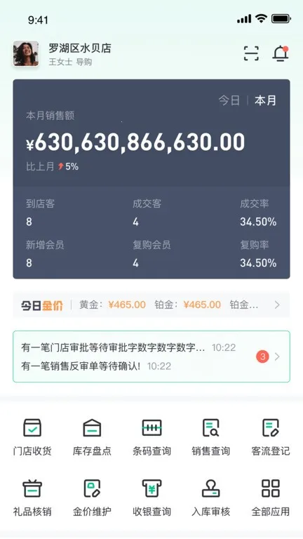 3. 经营灵活:支持连锁分店单店经营,珠宝饰品数据分店共享,经营数据互不交叉,还可相互调拨。