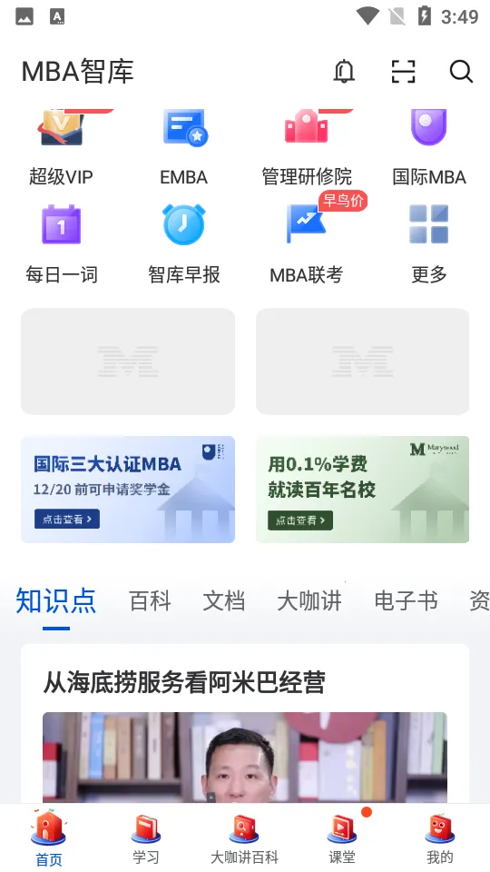 如果你想学习经济管理领域知识,那MBA智库APP绝对是个好帮手。它能为你提供超实用的知识讲解,还有优质企业管理资源、经管百科课程及文档资料等。不管是企业管理者、创业者,还是MBA学生等都能在这里找到所需。