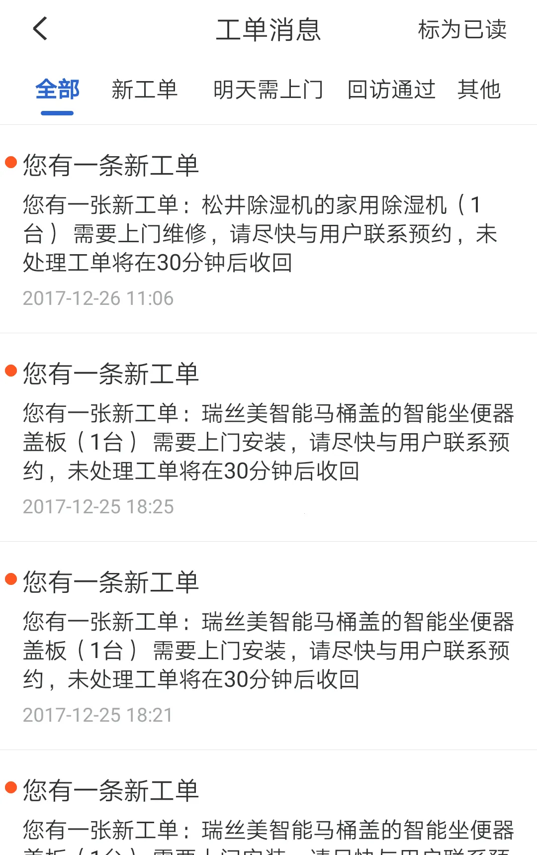 2. 新工单自动通知与推送,让师傅能够第一时间掌握最新的工单信息不错过任何机会。