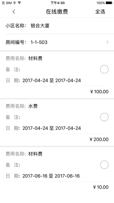 4. 能线上投诉咨询物业,需求全满足,缴费记录自动保存。