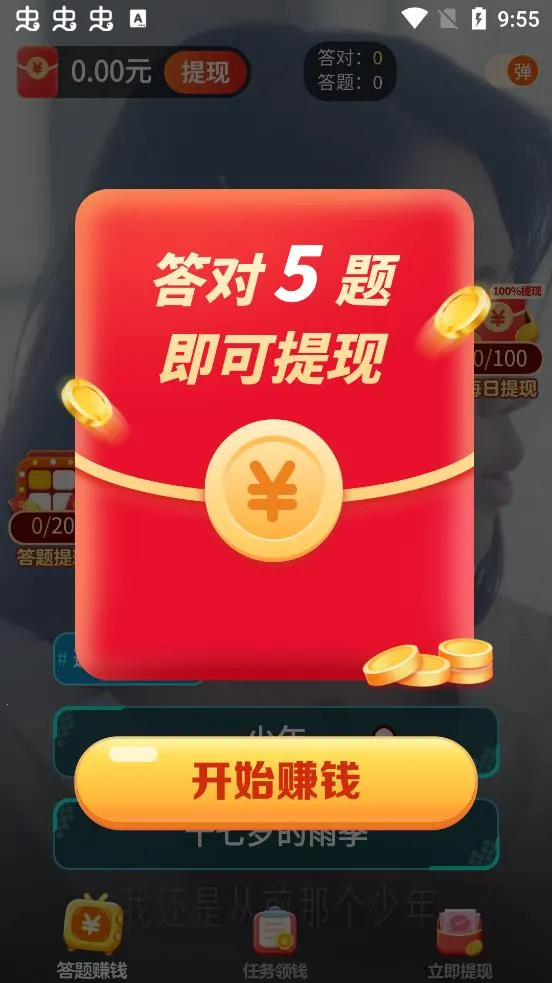 想通过玩游戏赚钱还能微信收款?金曲刷刷app就能满足你!这是一款超棒的视频听歌答题应用。它歌曲资源超丰富,能让你边看边听边互动,趣味十足。这里有海量视频,热点解说、搞笑娱乐啥都有。还有各种惊喜奖励,邀好友得金币,金币能直接兑现到微信。开宝箱、每日抽奖等活动不断,轻松度过碎片时间就能赚取零花钱。新用户还有现金红包奖励哦!每看一条视频都有金币奖励,看的越多赚得越多。而且它能一键生成视频感想,全新大屏模式让观看更沉浸,参与话题帖子讨论还能获得更多有价值内容。不管是经典老歌、大众嗨曲、网络情歌还是国际流行音乐,这里应有尽有,快来下载金曲刷刷app,享受赚钱又好玩的乐趣吧!