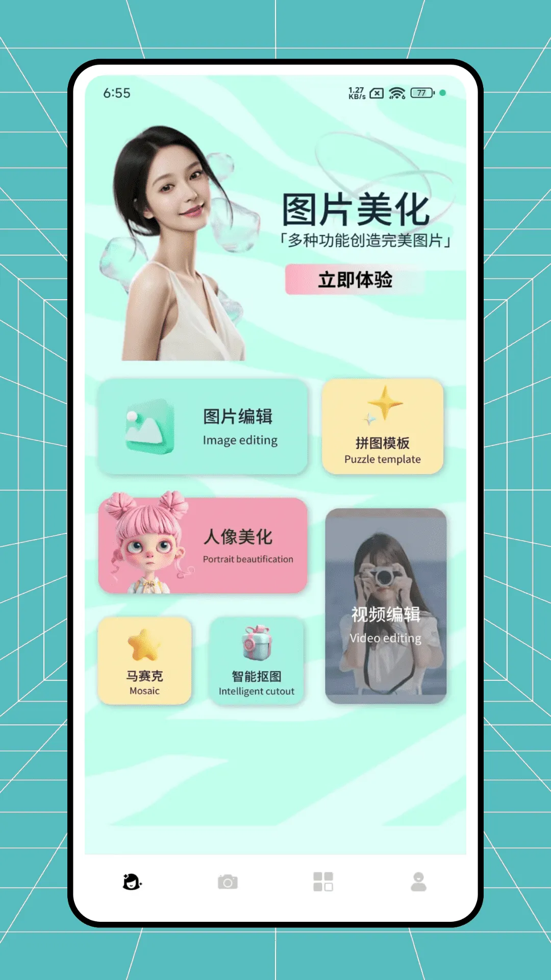 3. 提供美白、美容、特色相框、趣味装饰等丰富特性,让自拍照有趣又时髦。