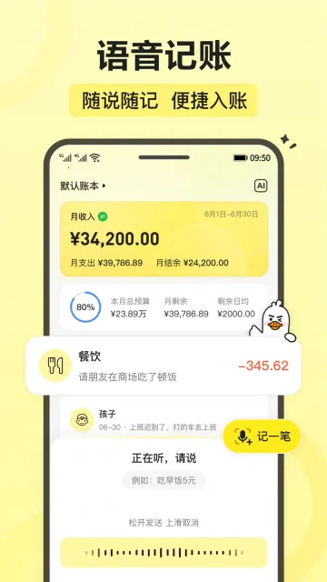 飞鸭记账是一款功能强大且安全的记账软件。它能帮你轻松记录日常收支,资金流向一目了然。内置多种常规记账模板,操作简单,几步就能完成记账。支持手动输入和语音录入,随时随地都能记。还会自动汇总每日支出到日历,生成饼图和趋势图,让你清晰了解钱花哪儿了。它有分类预算功能,能设定月度预算范围,超支会智能提醒,有效控制消费。而且数据自动同步云端,保障数据安全,不易丢失。不管是日常开销、生意往来,还是宝宝成长、理财规划,飞鸭记账都能满足你的多样化记账需求,提供个性化财务管理方案,帮你合理安排开支,避免非理性消费,让你轻松掌握个人财务动态,放心使用。