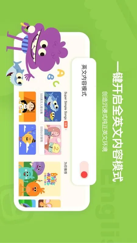 3. 中英文双语模式随意切换,轻松实现英语启蒙,营造沉浸式纯英语环境。
