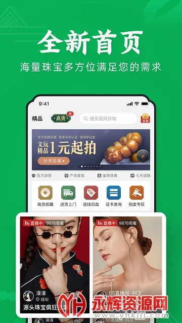 翡翠严品是一款专注翡翠珠宝直播购物的软件,挺可靠的。它能解决你买翡翠怕不靠谱的问题。这里汇聚全球优质珠宝资源,涵盖多种品类。有资深持证主播驻扎源头市场,严控质量,保证正品高性价比。全品类真品担保,假一赔百万,鉴定公开透明,资金全程托管。源头工厂直供,无中间商赚差价。软件亮点多多,新用户首单赠现金红包,专享特价区。商城珠宝海量,满足多样选购需求。支持直播互动,提升购物参与感。还与顺丰签运输保险,0风险包邮。7天无理由退换货,趣味拍卖0元起拍。使用也方便,下载安装、登录就行。不管是买翡翠自己戴,还是想入驻开店赚钱,它都能满足你,让你购物无忧,轻松拥有心仪翡翠。