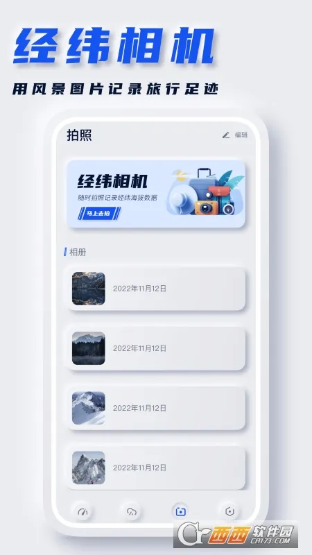 3. 地理足迹记录:拍摄照片时自动添加经纬度、海拔、温度、时间及地点信息,能精准记录每次户外行程,生成专属地理足迹。
