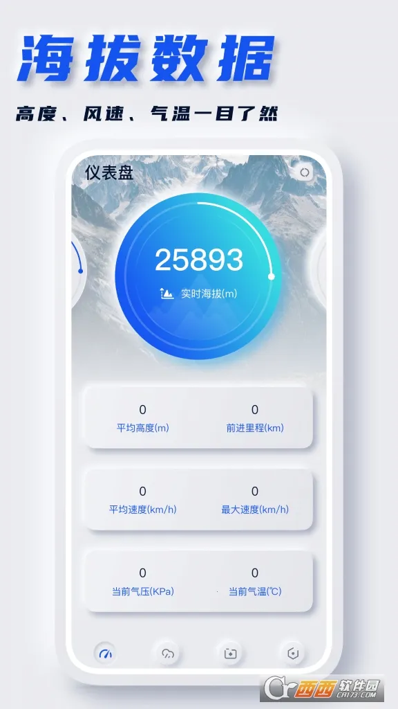 2. 精准海拔测量:可精准测量当前位置海拔,同步记录行进里程与平均速度,助力科学调整登山节奏,有效提升运动效率。