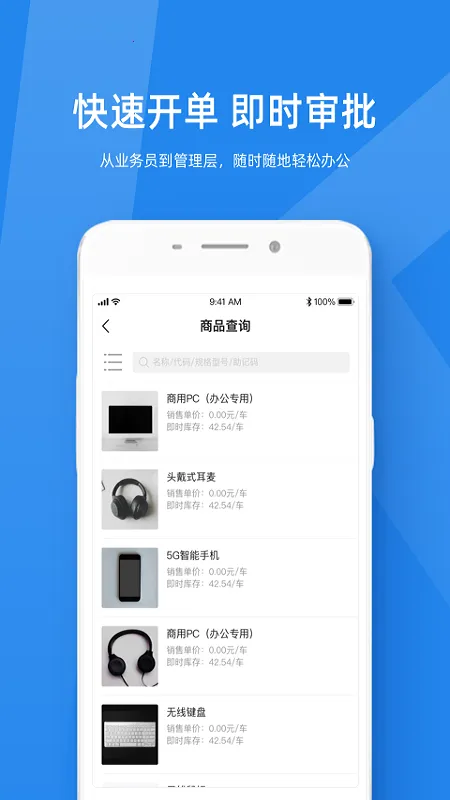 随时随地轻松办公,指尖上的KIS云全面支持KIS云旗舰版、专业版、商贸版移动端功能,快速开单即时审批,从业务员到管理层,随时随地都能轻松处理工作。