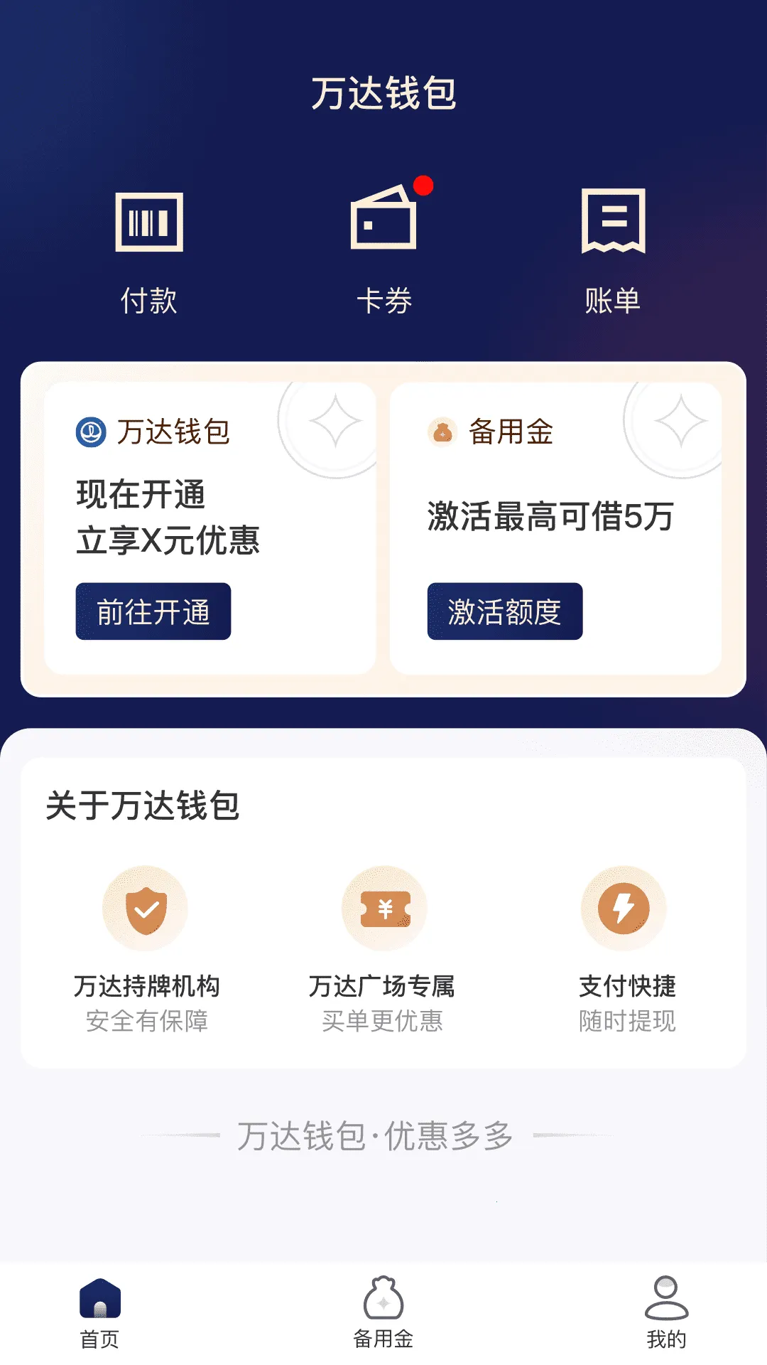 万达钱包 2026 官方最新版本由万达集团打造,能获取所在城市万达购物广场信息及门店,支持先用后付、电影购票等,提供优惠券,可扫码付款、管理卡券包,还有更多优惠福利,让消费更省钱便利。