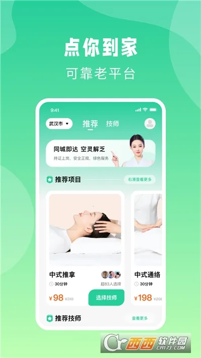点你到家是中国领先的O2O上门按摩服务平台,技师经面部识别实名认证。提供多元化服务,有医师级团队,服务专业。可便捷预约,价格合理。打破传统壁垒,满足全方位健康需求,数千万用户的共同选择。