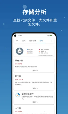 2.存储分析功能,可以帮助你查看手机里面什么文件在占用空间,方便你清理删除一些没用的文件