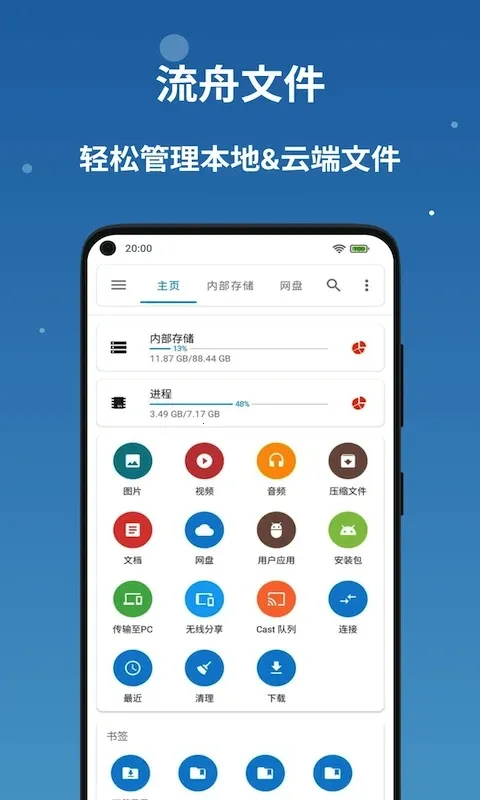 流舟文件官方版是功能全面的文件管理软件,可对手机多种文件操作,支持预览编辑、备份恢复、跨设备传输及加密。能管理本地和云端文件,兼容性强、运行稳定,增强文件安全性,避免丢失。