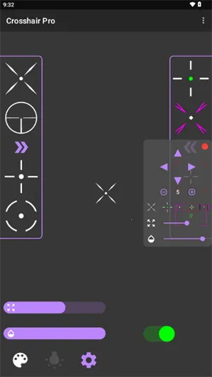 1. 三秒调出:点即可出现十字圆点激光菱形等12种预设,实时生效,游戏内快速切换。