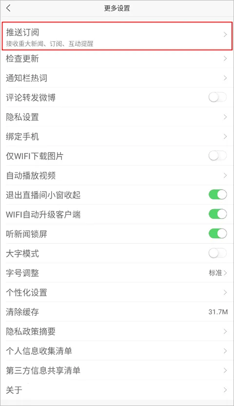 2、在设置列表中找到并点击“推送订阅”选项。