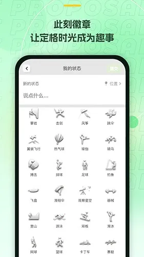 3. 精美的状态徽章:拥有上百种有趣徽章,让记录更具乐趣,使状态分享更简单。