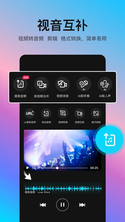 2. 操作简单便捷:只需选择功能、选择音频即可立即开始编辑,手动拖动或通过参数设置就能轻松选择想要编辑的音乐位置,快速完成音频处理。